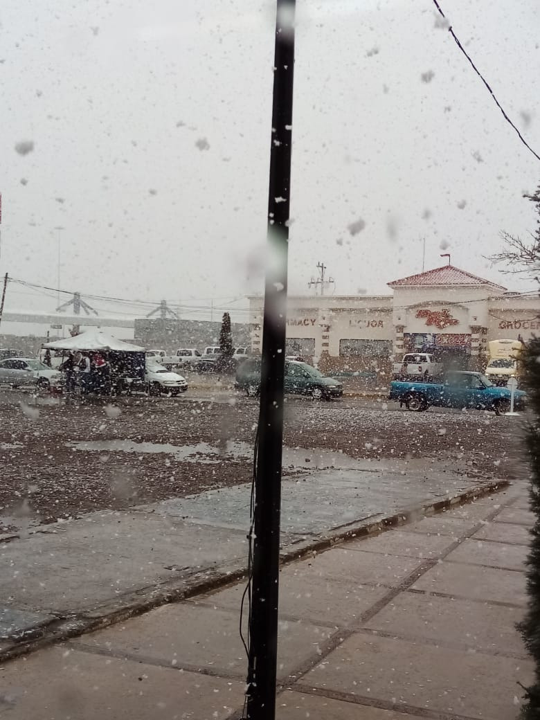 Mientras que en Ciudad Juárez se presenta caída de granizo en zonas dispersas de la localidad; aguanieve en Guadalupe y lluvia moderada en Ahumada.