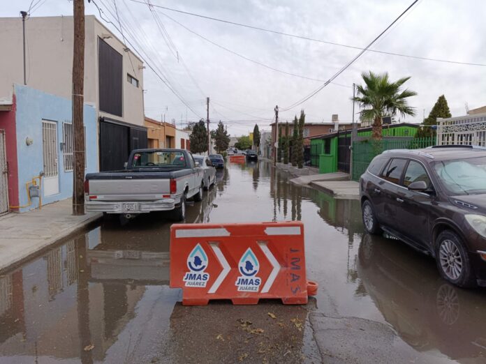 Ciudad Juárez, Chih .- Desde las 8:00 de la mañana de hoy martes, tras detectarse la fuga en una caja de válvulas, personal de la Junta de Agua y Saneamiento de Juárez se desplazó hasta ese punto para atender la emergencia.