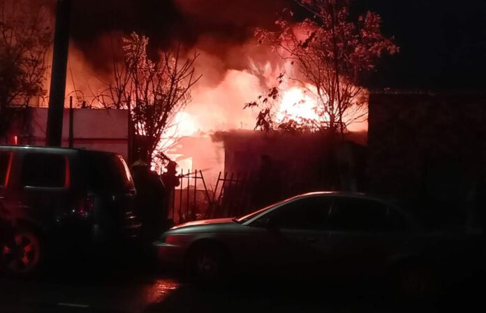 Ciudad Juárez, Chih. (ADN/Staff) – Durante la noche de este domingo, se registró un incendio en un taller mecánico ubicado en la intersección de las calles Mejía y Panamá, lo que provocó la movilización del Heroico Cuerpo de Bomberos y de agentes de la Coordinación General de Seguridad Vial de Ciudad Juárez. Las autoridades acudieron para controlar las llamas y gestionar el tránsito en la zona, el cual experimentó congestión debido al incidente.