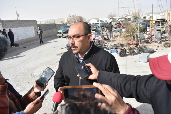 Ciudad Juárez, Chih .- Gibran Solís Kanahan, titular de Limpia, indicó que en dicha área verde ubicada en el cruce de las calles Agua Azul 2 y Jesús Valdez, se hizo el retiro residuos de refacciones, así como de la basura acumulada debajo de los vehículos ‘yonkeados’. Con el apoyo de una grúa por parte de la Coordinación General de Seguridad Vial se retiraron carros desmantelados.