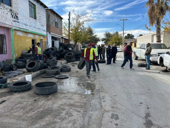 Ciudad Juárez, Chih .- Gibran Alhe Solís Kanahan, titular de la dependencia, comentó que por medio de una denuncia ciudadana el área de Inspección ya había entregado las notificaciones correspondientes al responsable, pero al no atender el llamado se inició el proceso jurídico para infraccionarlo y proceder a recoger los neumáticos.