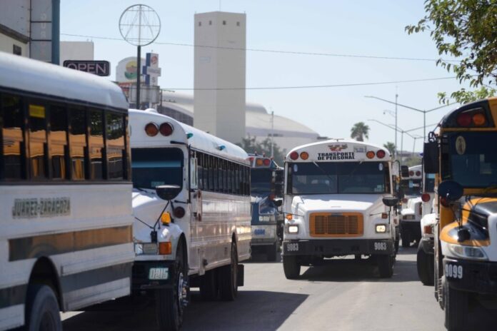 Ciudad Juárez, Chih (ADN/Arturo Hernández) – Poco menos de 4 mil unidades del transporte de personal se apropian diariamente en horas pico de las principales avenidas de la ciudad, con el deterioro natural, que, por su uso, se causa al pavimento.