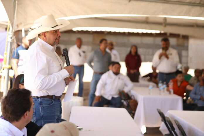 En un evento realizado en el ejido San Isidro, el Presidente Municipal, Cruz Pérez Cuéllar, presidió este día la entrega simbólica de solución nutritiva a productores del Valle de Juárez.