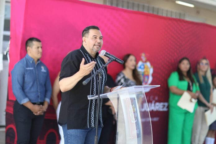 Ciudad Juárez, Chih .- “Me da mucho gusto saludar a las y los estudiantes, maestros, maestras que hoy nos acompañan, así como a las madres y padres de familia, también le agradezco a la directora del plantel, Margarita Alfaro por su anfitrionía”, expresó.