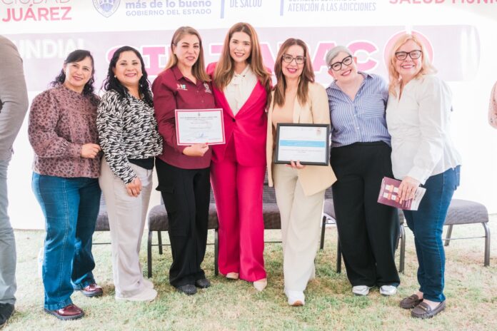 Ciudad Juárez, Chih .- La entrega se llevó a cabo en el marco del Día Mundial Sin Tabaco, que se conmemora cada 31 de mayo, y fue otorgada por la Secretaría de Salud y la Comisión Nacional de Salud Mental y Adicciones a la Presidenta del DIF Municipal, Rubí Enríquez.