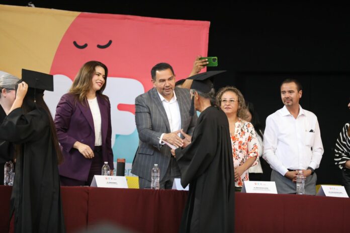 El Presidente Municipal, Cruz Pérez Cuéllar, acompañado de la presidenta del DIF Municipal, Rubí Enríquez, encabezaron la ceremonia de graduación de 90 estudiantes que cursaron la educación abierta de nivel primaria, secundaria y preparatoria en los Centros de Atención Social y Educativa para la Familia (CASEF).