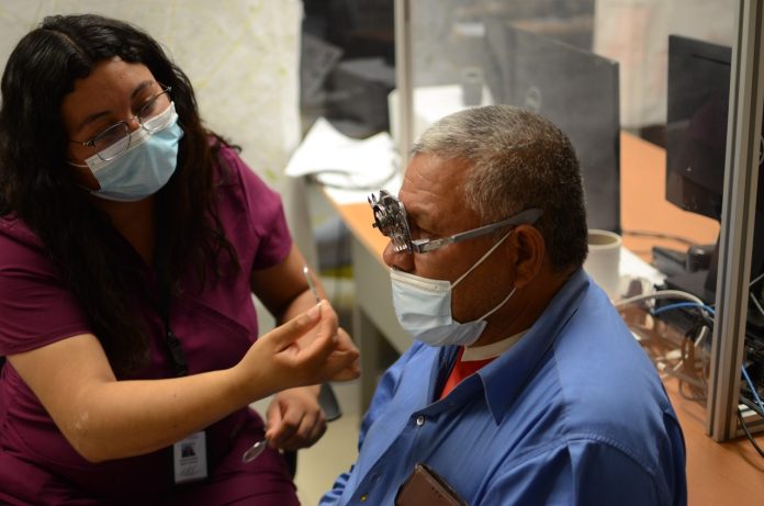 Los ciudadanos son atendidos por las optometristas Aracely Zamarripa y Selene Castro, quienes determinan qué tipo de graduación requieren o en caso de que sufran de alguna enfermedad o infección, se hace del conocimiento al ciudadano para que acuda con un médico.