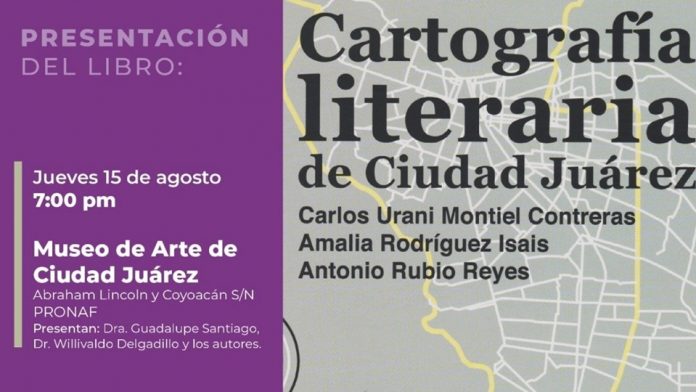 Cartografía literaria será presentada con vino de honor y ambigú para las personas que acudan el próximo jueves 15 de agosto a las 7 de la tarde, en el Museo de Arte de Ciudad Juárez, ubicado en avenida Lincoln y Coyoacán s/n, zona Pronaf.