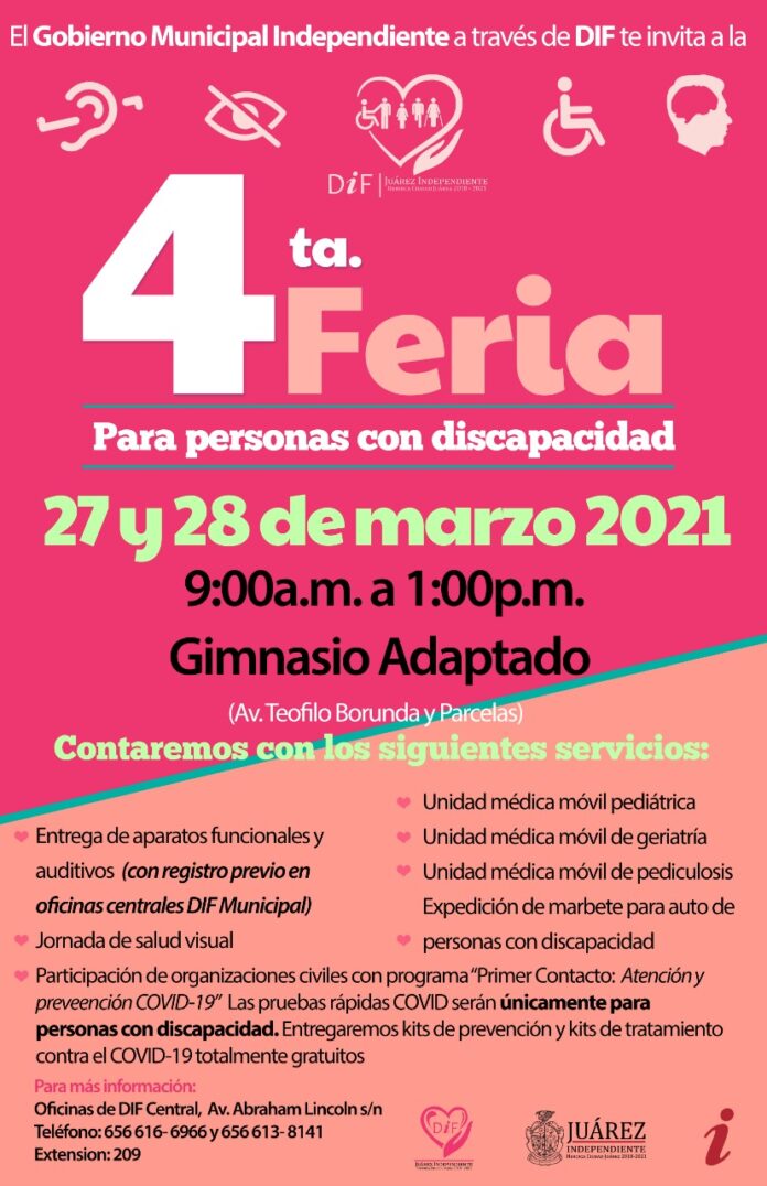 DIF Juárez invita a la población a la 4ta. Feria para personas con discapacidad de marzo de 2021.