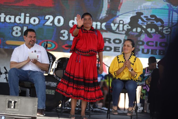 El Presidente Municipal, Cruz Pérez Cuéllar, en el marco de la conmemoración del Día Internacional de los Pueblos Indígenas, asistió al Festival Solana Norte de Pies Ligeros, el cual se realiza este sábado en la Mega Bandera, previo a la carrera del día de mañana.