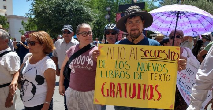 Mientras tanto en la capital del estado, el secretario de la Sección 8 del Sindicato Nacional de Trabajadores de la Educación (SNTE), Eduardo Zendejas, encabezó un plantón en las puertas del Supremo tribunal de Justicia, en donde exigió se diera marcha atrás a los dos amparos interpuestos por igual número de asociaciones civiles en contra de la entrega de los libros de texto.