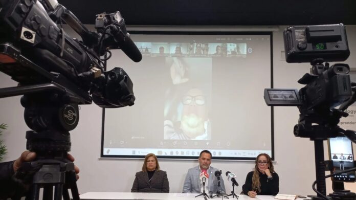 Mario Cepeda, presidente de Coparmex Juárez, así como Isela Molina de Canacintra Juárez y la señora Gloria Soto de la CROC, estuvieron de manera presencial en uno de los salones de Technology Hub, en tanto que otros lideres lo hicieron de manera virtual desde diversos puntos del estado.