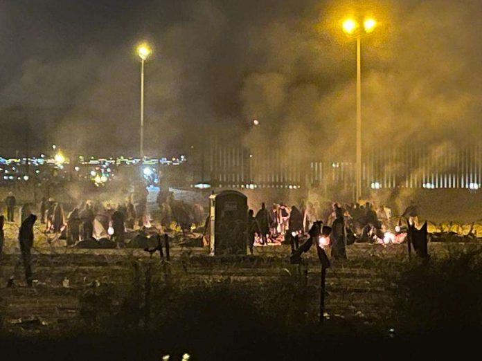 Se protegen migrantes con gran fogata de las bajas temperaturas