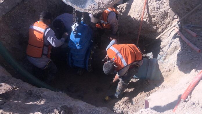 Ciudad Juárez, Chih. – La JMAS Juárez informa que con el reemplazo de una válvula de control de 14 pulgadas de diámetro, se llevó a cabo la reparación de la fuga de agua registrada en el cruce de Avenida Ejército Nacional y Francisco Villarreal Torres.