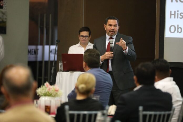 El Presidente Municipal, Cruz Pérez Cuéllar, se reunió con empresarios chihuahuenses esta tarde, a quienes les habló sobre los diferentes programas y obras que se han realizado en Ciudad Juárez a través de su administración.