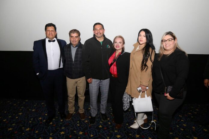 Ciudad Juárez, Chih .- La proyección de la cinta se llevó a cabo en Cinemex de Galerías Tec, donde el alcalde acompañó a Iván Eduardo Lópezcampos, guionista, productor y codirector de la obra.