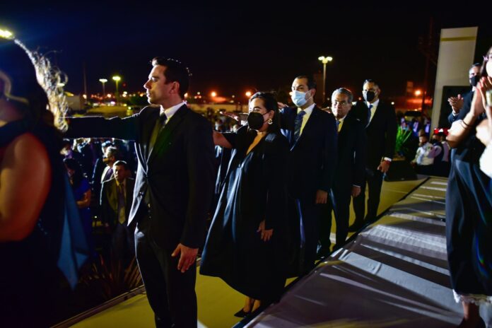 Ciudad Juárez, Chih. (ADN / Martín Orquiz) – Luego de su toma de protesta como Gobernadora del Estado de Chihuahua, María Eugenia Campos Galván, hizo lo propio con el equipo que trabajará bajo su mando en la administración estatal 2021-2027.