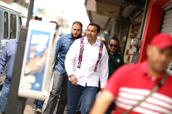 Ciudad Juárez, Chih .- Acompañado por el director general de Obras Públicas, Daniel González García, el alcalde inició el recorrido en el cruce de 16 de Septiembre y Melchor Ocampo, para trasladarse a la calle Javier Mina y continuar por la Ramón Rayón y concluir en Plaza Misión de Guadalupe.