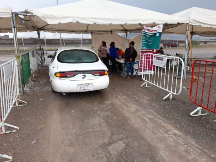 Ciudad Juárez, Chih .- “Se suspendieron las actividades debido a que las fuertes ráfagas de viento afectaron algunas de las carpas, por lo que el proveedor está hoy trabajando en la reparación, además de que la lluvia no permite tener los equipos de cómputo al aire libre”, mencionó la funcionaria.