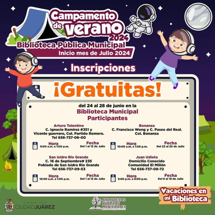 Ciudad Juárez, Chih .- Las actividades dieron inicio el lunes en las Bibliotecas Municipales Arturo Tolentino y San Isidro Río Grande, mismas que concluirán el 12 de julio.