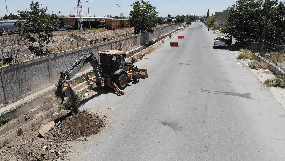 Ciudad Juárez, Chih. – Con el uso de una retroexcavadora iniciaron los trabajos de desazolve de 1.5 kilómetros metros de la acequia, que ayudarán a mitigar las inundaciones de la zona centro, que se registran durante el temporal de lluvias.