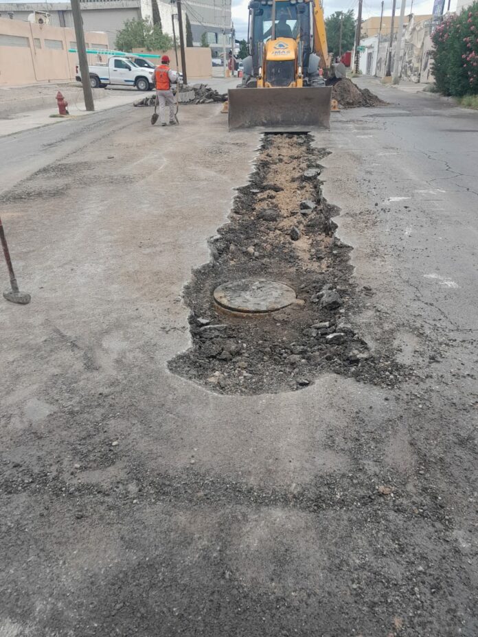 Personal del departamento Alcantarillado de la J+ realiza la reposición de tubería de 8 pulgadas sobre la Av. Del Charro, debido a que la existente ya terminó su tiempo de vida útil.