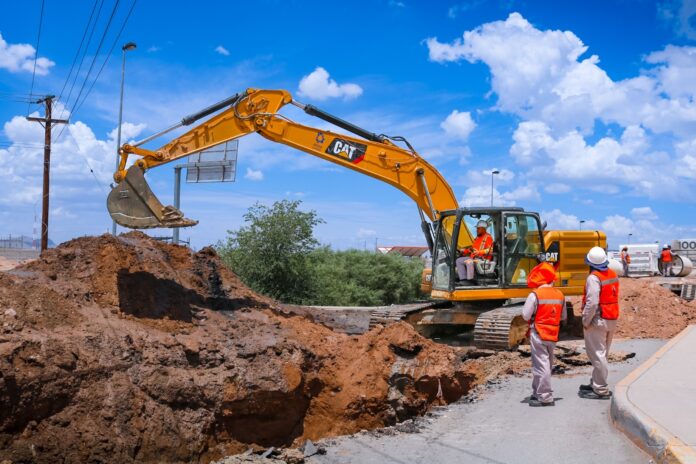 Desde la madrugada de este lunes, personal de la Junta de Agua y Saneamiento de Juárez trabaja intensamente en la reparación de un hundimiento detectado en el colector Candelaria, provocado por el desgaste de una tubería de concreto que ha llegado al final de su vida útil.