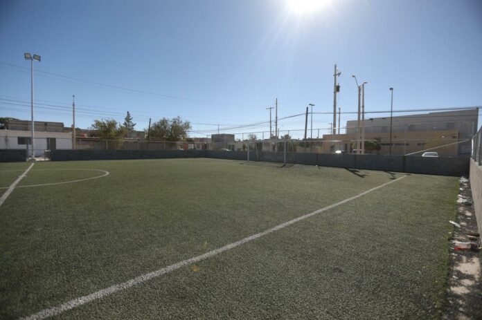 Explicó que actualmente se trabaja en los detalles del espacio, en el cual se llevó a cabo la rehabilitación de una cancha de fútbol con pasto sintético y juegos existentes, banquetas y rampas, así como la colocación de algunas especies de arbolado, además de áreas permeables y la construcción de una cancha de usos múltiples.