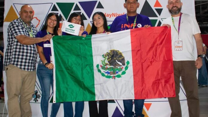 Por parte del Conalep Juárez III, las alumnas Vania Aide Ríos Medina y Katia Celeste Herrera Díaz, junto a Héctor Emanuel Román Martínez, lograron el bronce con el proyecto “Mujeres que luchan, mujeres que inspiran”, asesorados por el profesor Flavio Martínez Álvarez.