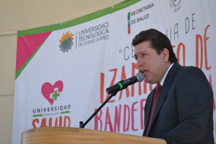 Y en relación con este izamiento de bandera blanca en la UTCJ, el doctor Jorge Portillo Rodríguez, coordinador de salud pública de la Jurisdicción Sanitaria número 2, explicó que esto es una estrategia implementada en asociación con institutos y comunidades.