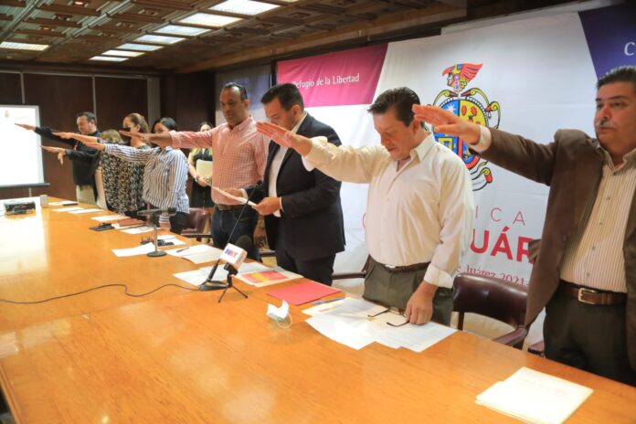 El acto se efectuó en el salón José Reyes Estrada de la Presidencia Municipal, donde el alcalde señaló que el comité se establece de conformidad con el Artículo 103 de la Ley de Bienes del Estado de Chihuahua.