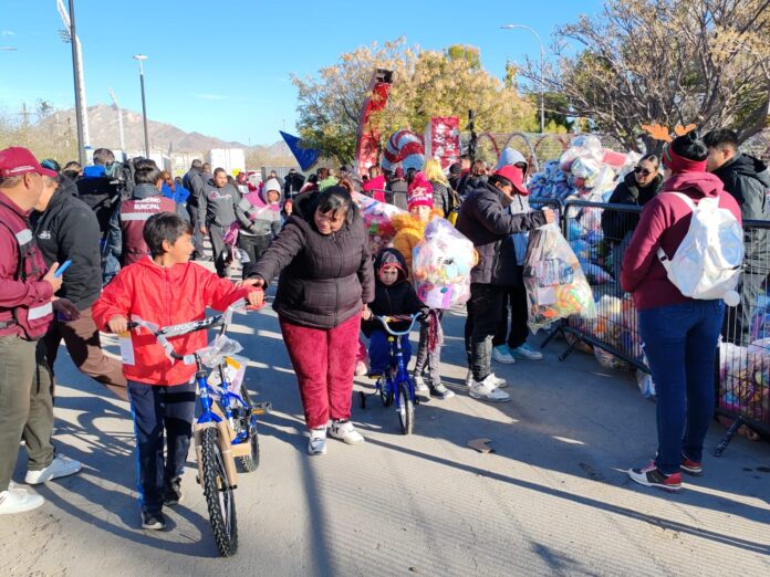 Ciudad Juárez, Chih (ADN/Arturo Hernández) .- Viajaron desde los kilómetros para ser de los primeros en la fila y no tener problemas para que Santa Bomberos les entregara juguetes para sus dos hijas, pero, sobre todo, una bicicleta para regresar a casa con el sueño de la menor cumplido