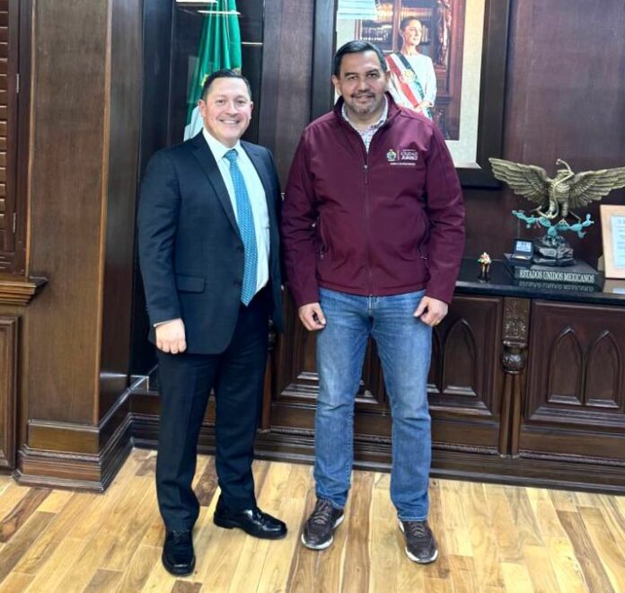 El presidente del Colegio de Notarios del Distrito Bravos, Ricardo Aguirre, hizo una visita de cortesía al alcalde Cruz Pérez Cuéllar, para ofrecer los servicios de los profesionistas del ramo en beneficio de la comunidad.