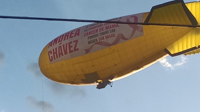 Un zeppelin desplegando un mensaje de Andrea Chávez para la campaña contra el cáncer de mama ha sido visto en el cielo de Ciudad Juárez.