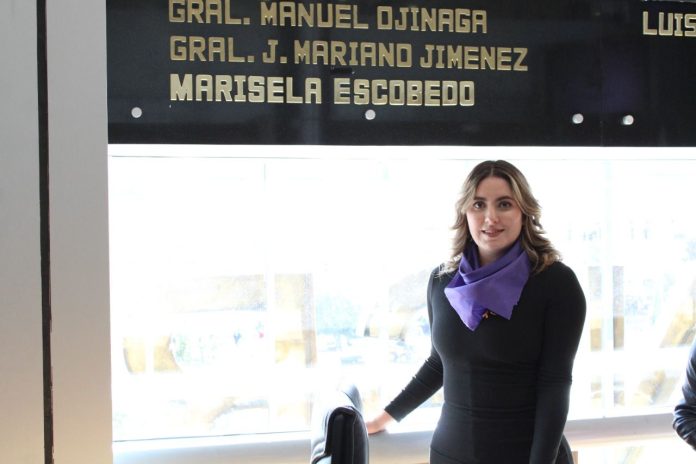 A través de una Sesión Solemne, el Congreso del Estado realizó la develación del nombre de Marisela Escobedo Ortíz en letras de oro, como un reconocimiento a su lucha incansable por la justicia.