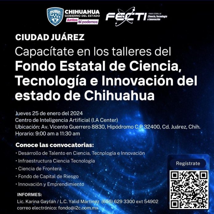 Chihuahua, Chih .- Con el objetivo de proporcionar información detallada sobre las reglas de operación y los proyectos elegibles, en las convocatorias vigentes del Fondo Estatal de Ciencia Tecnología e Innovación (FECTI), el Instituto de Innovación y Competitividad (I2C) invita a los talleres que se impartirán en Chihuahua, Juárez, Camargo, Delicias, Parral y Cuauhtémoc.