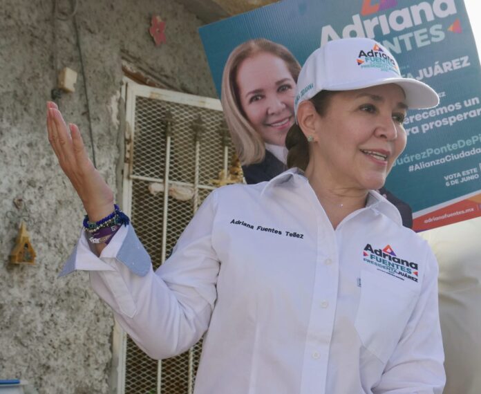 Ciudad Juárez, Chih. – En recorrido por el Centro de la ciudad, la aspirante a la Alcaldía Adriana Fuentes tuvo el detalle de llevar a un mariachi para que agasajara a las mamás que pasaban por las cercanías de la Plaza de Armas.