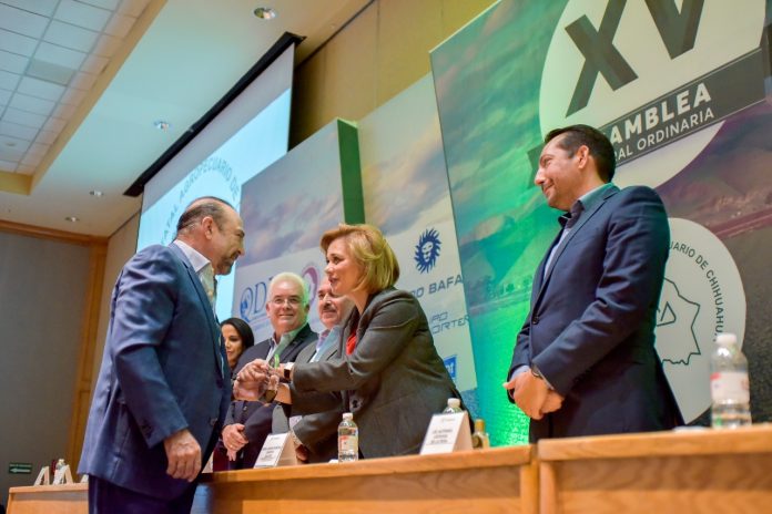Chihuahua, Chih .- En acto efectuado en el Centro de Convenciones y Exposiciones de Chihuahua, la mandataria estatal hizo un llamado a los presentes a seguir con el trabajo conjunto por el bien del campo chihuahuense: “lo peor que nos puede pasar es desvincularnos, vivir en la divergencia y en la falta de unidad”, resaltó.