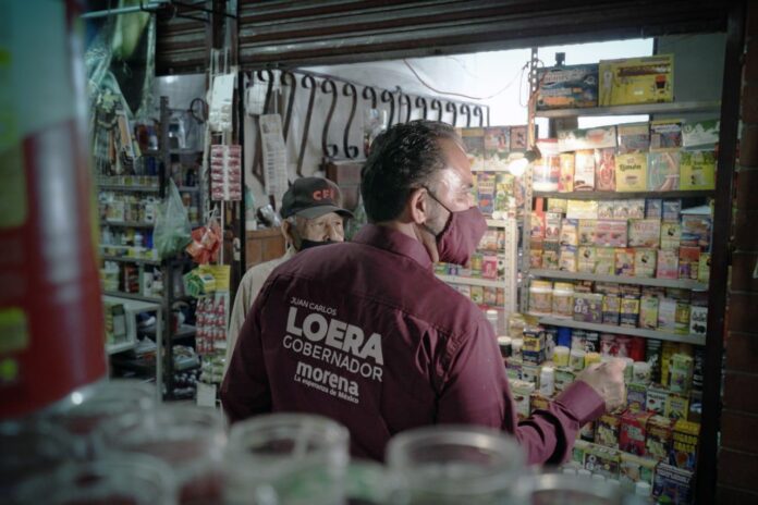 Ciudad Juárez, Chih. (ADN/Martín Orquiz) – Locatarios de los mercados Cuauhtémoc y Reforma le expresaron al candidato de la coalición Juntos Haremos Historia en Chihuahua, Juan Carlos Loera de la Rosa, sus inquietudes por la reactivación económica de la ciudad en medio de la pandemia por COVID-19, durante la visita que hizo hoy a esos centros de comercio.