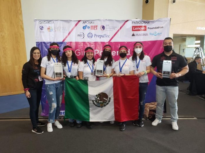 Las seis alumnas del plantel 11 del CECyTECH, Ciudad del Conocimiento de Ciudad Juárez con el apoyo del coach, Gabriel Salazar Chávez, destacaron al obtener tres galardones: Campeonas de Robot Skills, Campeonas de Excelencia y Campeonas de Torneo.