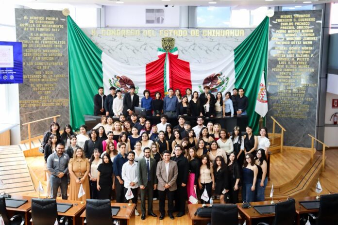 Chihuahua, Chih .- Más de 80 estudiantes de la Facultad de Ciencias Políticas y Sociales (FCPYS) de la UACH Campus Juárez visitaron el Congreso del Estado para conocer más sobre este poder.