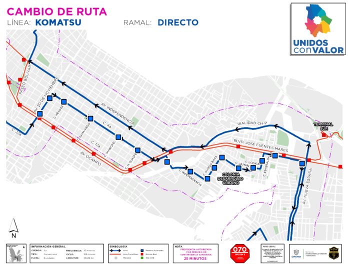 En el caso de la Ruta Komatsu Directo, se cambió su recorrido y ahora ingresará a la Colonia Desarrollo Urbano para recuperar un servicio altamente demandado.