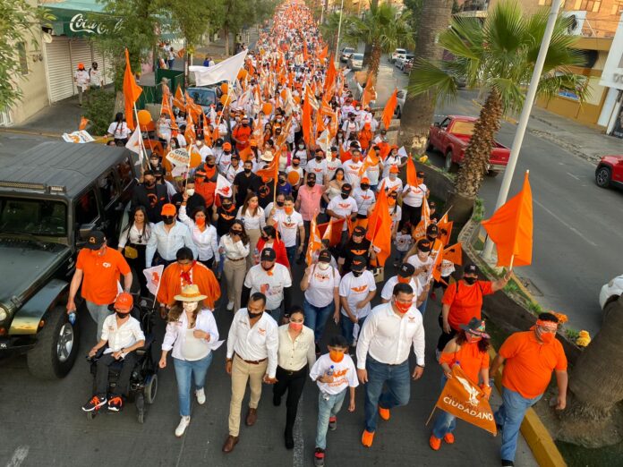 “Invito a los ciudadanos libres que salgan este 6 de junio para defender lo que es nuestro, defendamos a nuestra ciudad, si no votamos, estamos ignorando la historia y regalando el futuro, hoy es momento de refrendar el color naranja. ¡Viva Parral! ¡Viva Movimiento Ciudadano!. Algo bueno está pasando en Parral”, concluyó César Peña.