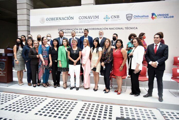 Chihuahua, Chih .- El gobernador Javier Corral encabezó la ceremonia de conformación de la Coordinación Nacional Técnica del Protocolo Alba, por medio de la cual, autoridades de los tres órdenes de gobierno e instituciones de la sociedad civil, se coordinarán para consolidar la homologación de los procesos de búsqueda de mujeres desaparecidas.