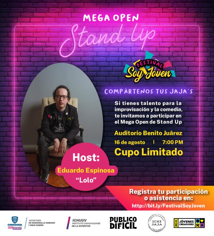 Ciudad Juárez, Chih .- El Gobierno del Estado, a través del Instituto Chihuahuense de la Juventud (ICHIJUV), realizará la tarde de hoy un show de “stand up” en Ciudad Juárez dentro de las actividades del “Festival Soy Joven”.