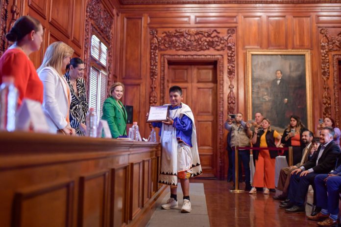 La mandataria estatal recibió al Gabinete Infantil en el Salón Rojo de Palacio de Gobierno, así como a la Gobernadora Infantil por un día, Kimberly Alejandra Hernández Cruz, originaria del municipio de Bocoyna, a quien dirigió unas palabras y distinguió por ocupar el cargo.