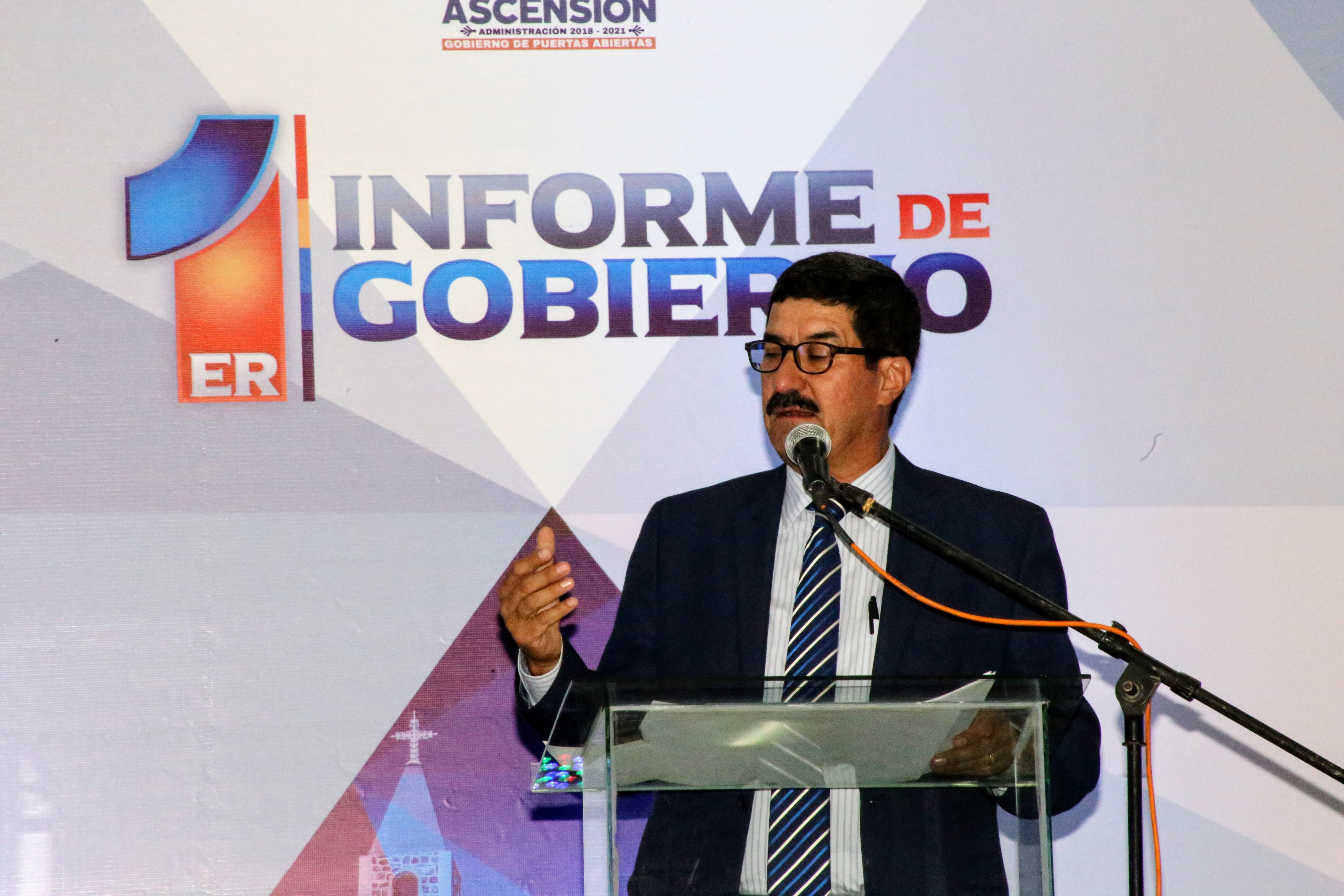 Al asistir al Primer Informe de Gobierno de la alcaldesa Laura Bernarda Romero García, el gobernador Javier Corral Jurado, informó que el Plan de Inversión 2019-2021 contempla obras de impacto social por 24.4 millones de pesos para el municipio de Ascensión.
