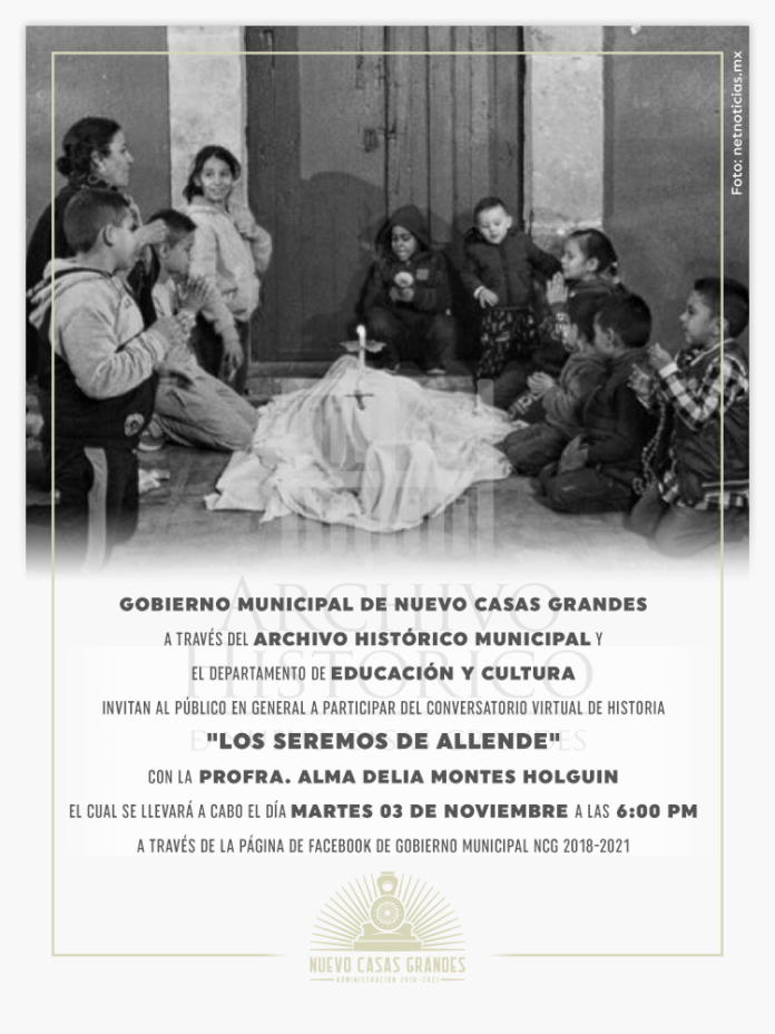 Nuevo Casas Grandes, Chih. – El Gobierno Municipal de Nuevo Casas Grandes, a través del Archivo Histórico en coordinación con la Dirección de Educación, Cultura y Turismo ofrecerá este próximo martes 3 de noviembre, el conversatorio virtual de historia con el tema “Los Seremos de Allende” en punto de las 18:00 horas a través de nuestras redes sociales.