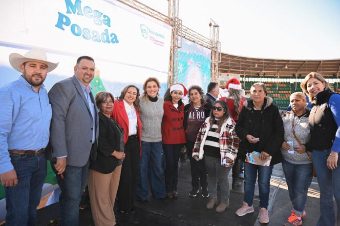 Nuevo Casas Grandes, Chih .- El encabezar la Mega Posada 2023 en la ciudad de Nuevo Casas Grandes, la gobernadora Maru Campos llamó a las más de 2 mil 300 personas ahí congregadas, a que en esta época decembrina eviten dejarse llevar por quienes buscan dividir a los chihuahuenses.