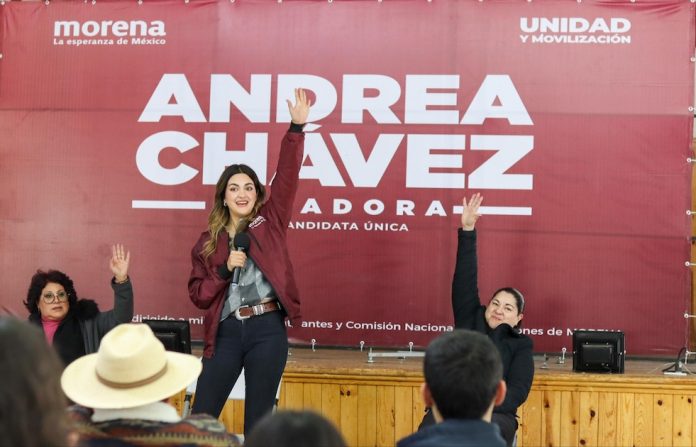 Buenaventura, Chih. (ADN/Staff) – En una asamblea cargada de esperanzas y promesas de cambio, la precandidata única de Morena al Senado de la República, Andrea Chávez Treviño, se dirigió a la población de Buenaventura con un discurso que resaltaba la gratitud y el compromiso. Agradecida con los brigadistas que apoyaron su causa desde antes de la definición partidista, Chávez Treviño enfatizó que su elección como precandidata única fue posible gracias al reconocimiento de su trabajo por parte de la gente de Chihuahua, un logro que, según ella, no hubiera alcanzado sola.